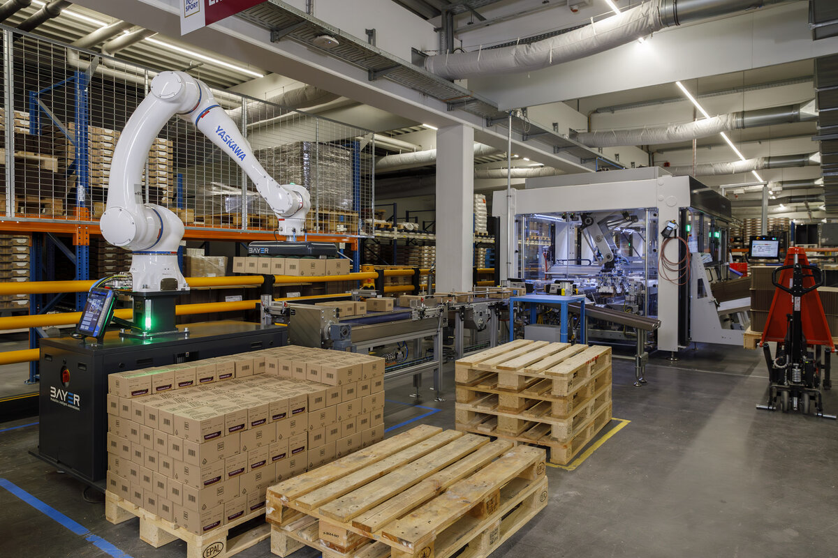 Palettiersysteme von Bayer mit Yaskawa Cobots für Ritter Sport Schokolade